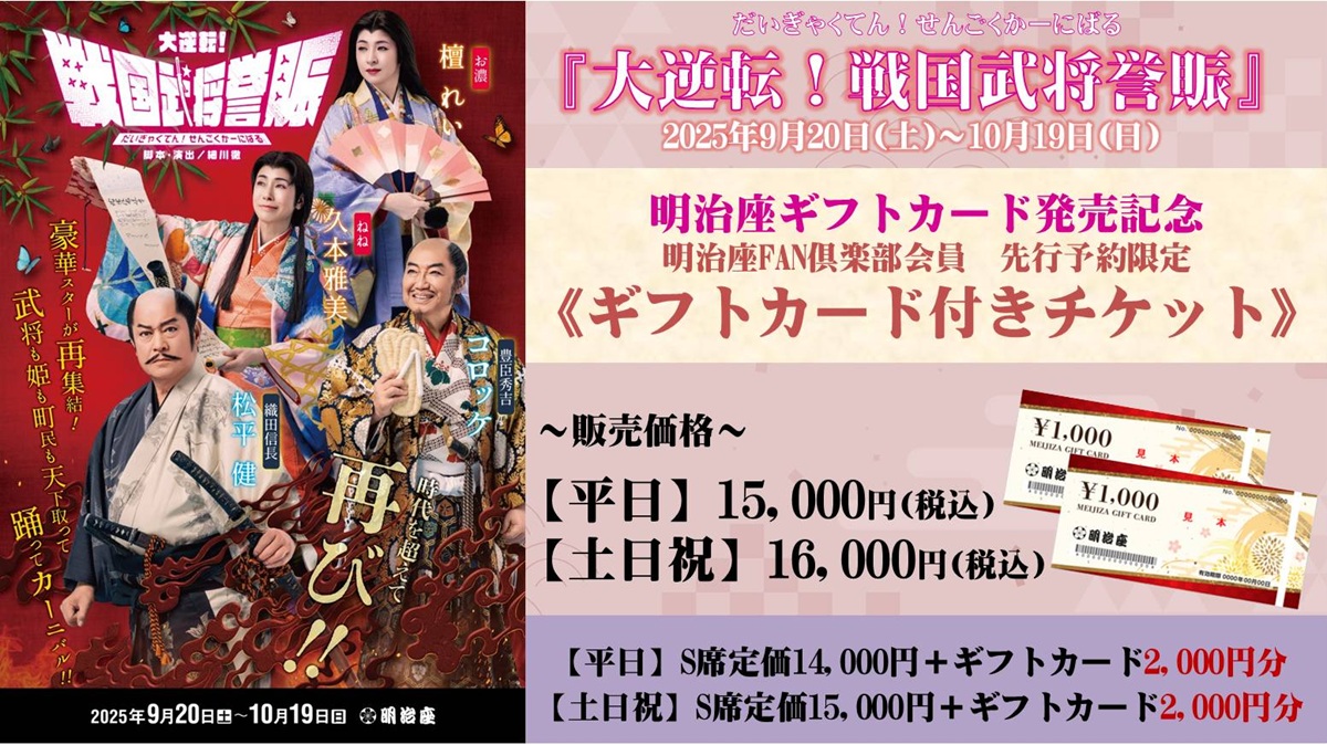 明治座ギフトカード発売キャンペーン企画《『大逆転!戦国武将誉賑』ギフトカード付きチケット》販売決定!