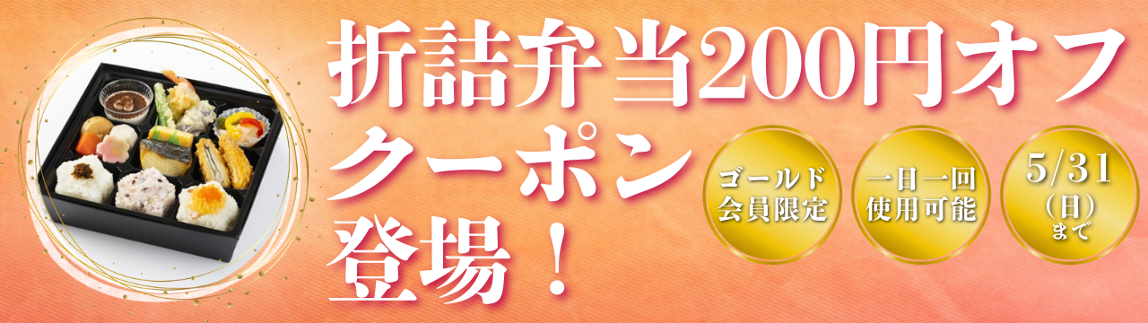 【ゴールド会員限定】折詰弁当200円オフクーポン登場!~5/31(日)【明治座FAN倶楽部リニューアルキャンペーン】