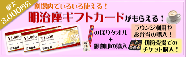 各受賞者へ、賞ごとに明治座ギフトカード最大3,000円分をプレゼント!