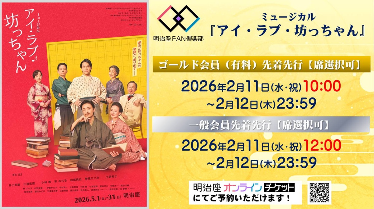 ※受付終了※◆ミュージカル『アイ・ラブ・坊っちゃん』【ゴールド会員(有料)・一般会員先着先行】