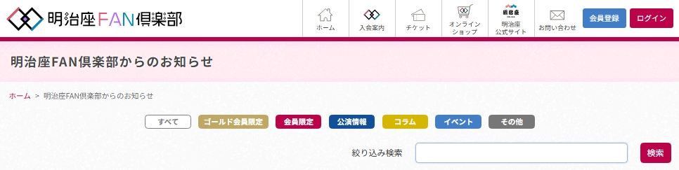 トップページに明治座FAN倶楽部のコンテンツを集約!