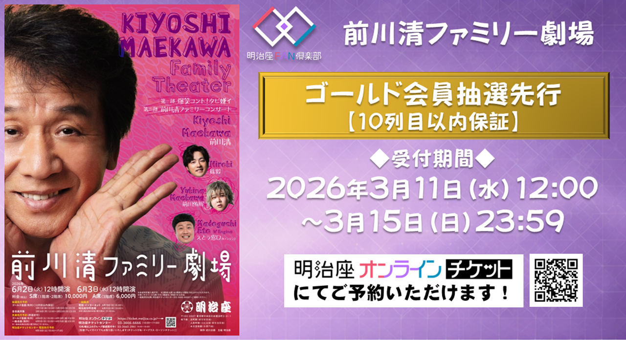 【3/11(水)~3/15(日)】『前川清ファミリー劇場』ゴールド会員抽選先行【10列目以内保証】