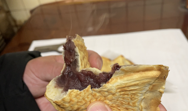 A.一番は、ここで焼きたてを食べていただきたいです。2つ買って1つはすぐ食べて、もう一つはお土産に。食べる向き(尻尾からか?頭からか?)や食べ方はお好みで。